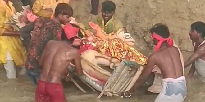 पंडालों में अंतिम आरती के बाद भक्तों ने गाजे-बाजे के साथ शोभायात्रा निकाली। जगह-जगह महिलाओं और युवतियों ने भक्ति भाव से नाचते-गाते मां को विदा किया। शोभायात्रा के दौरान श्रद्धालु “जय माता दी” के जयकारे लगाते हुए दिखे।